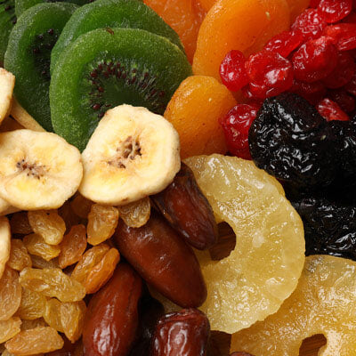 Dehydrate delicious strawberries, apples, bananas, and cranberries.