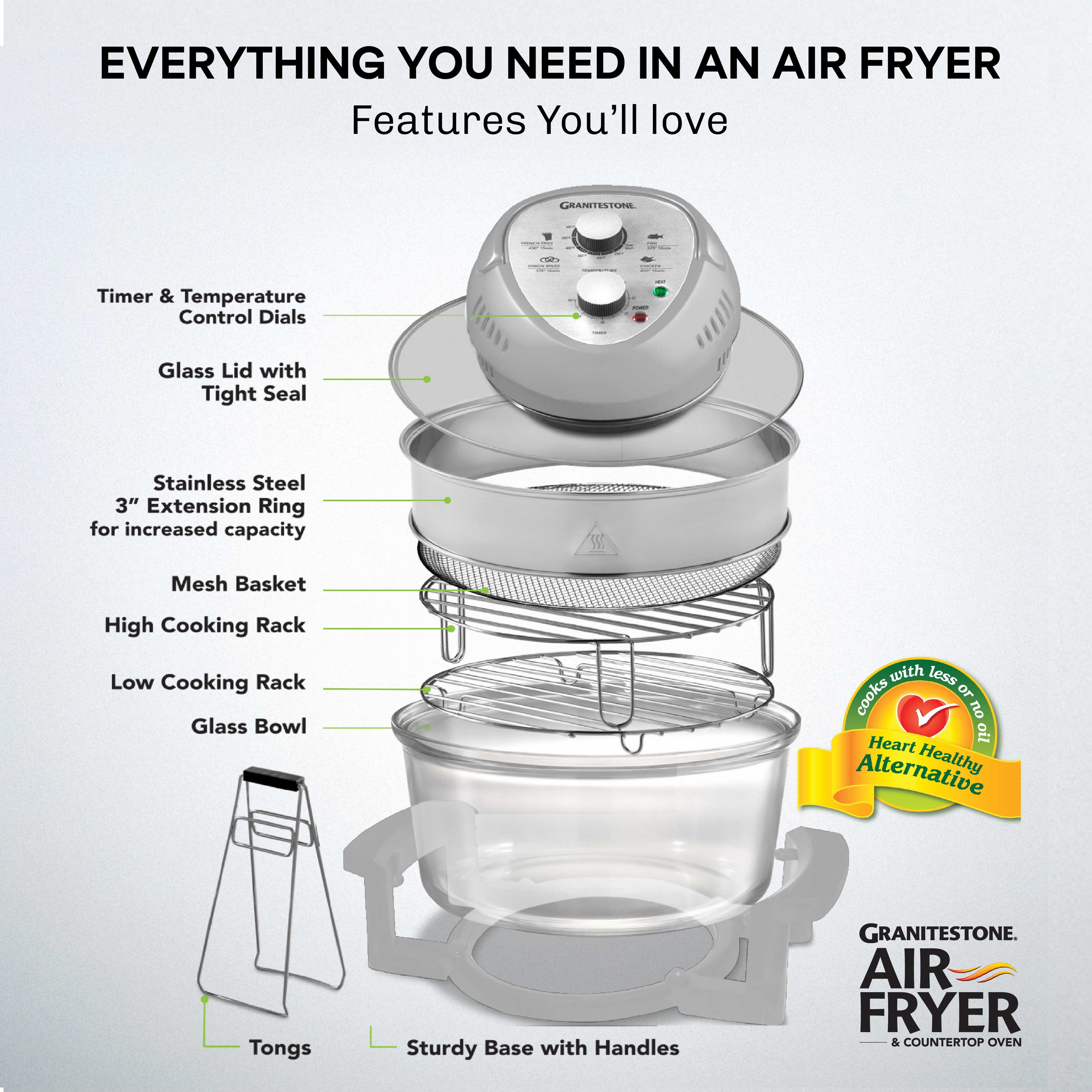 Granitestone Air Fryer's glass delivers crispy results with total transparency. Cook smarter, cleaner, longer.