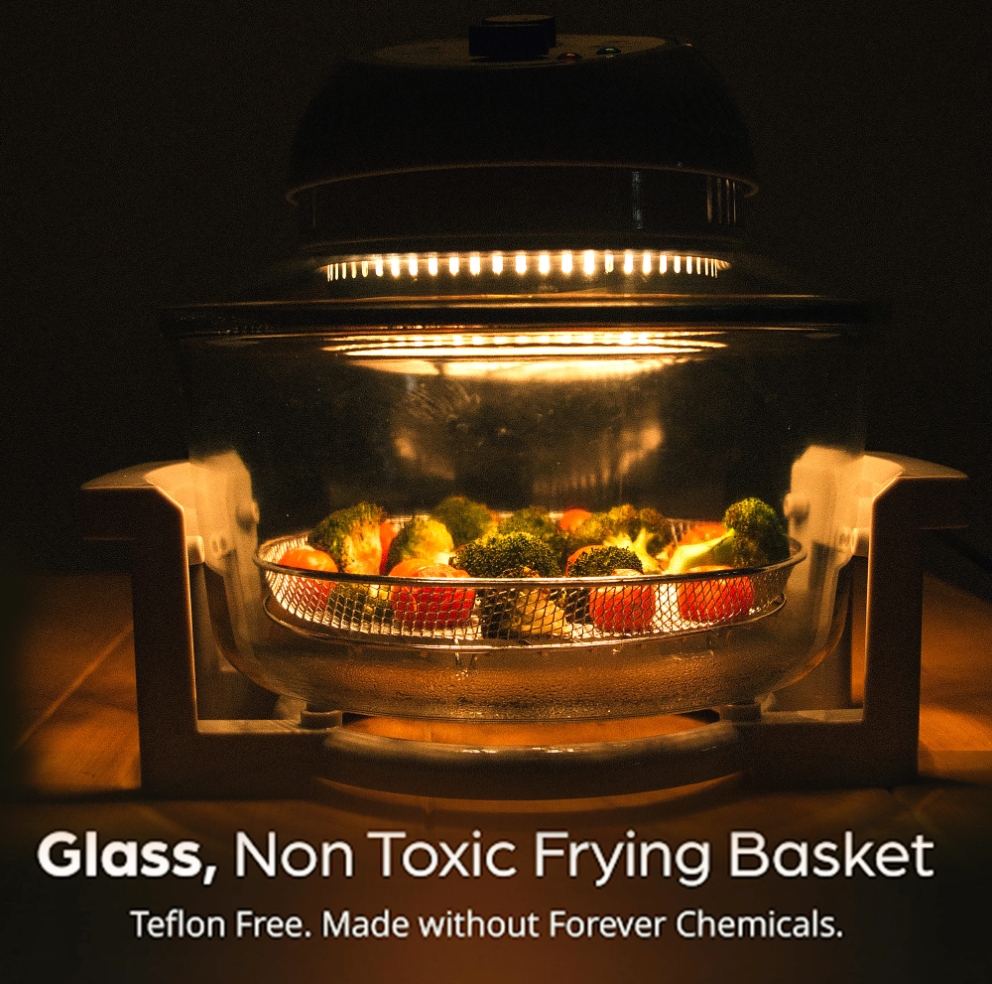 "I love this air fryer. Especially because it's non-toxic. It features a 16-quart glass bowl and stainless steel trays for cooking!! It fits perfectly on your counter. Highly recommended."