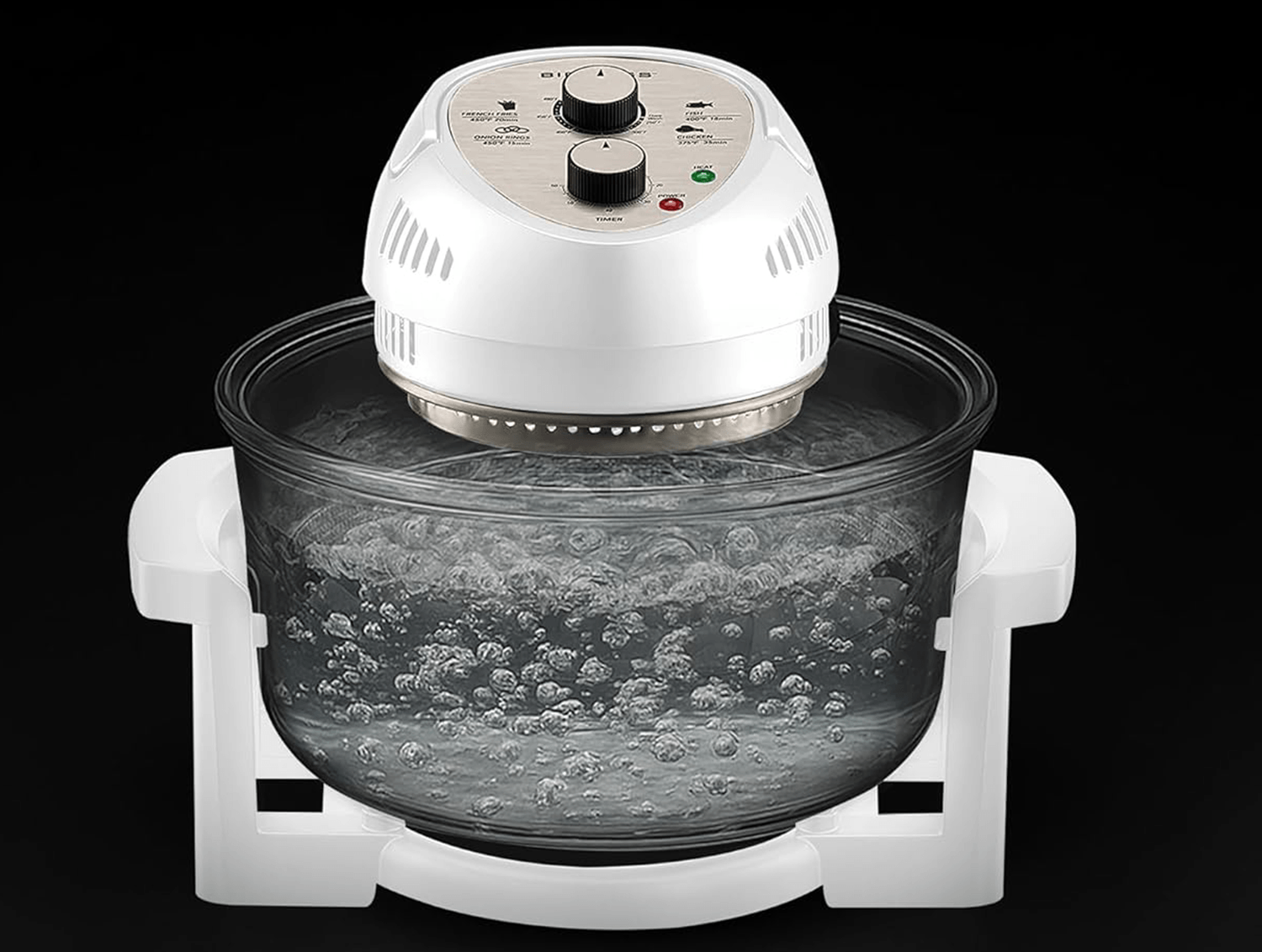 The clear glass bowl lets you monitor your food's progress without opening the chamber, keeping the heat in for a quicker cooking experience.